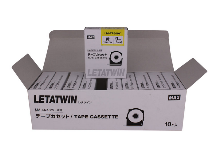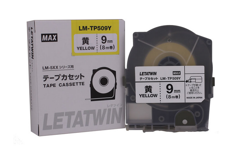 Băng in nhãn màu vàng, rộng 9mm, dài 8m /cuộn